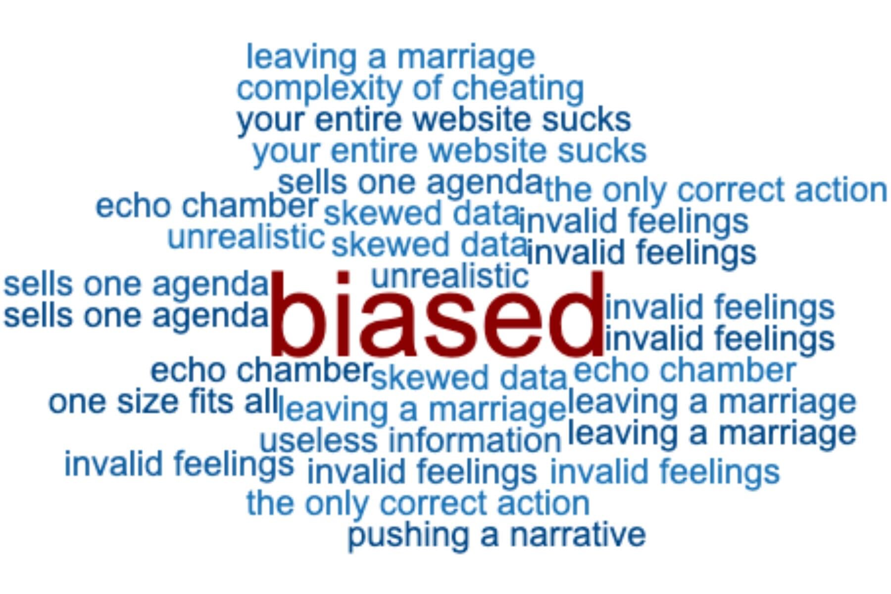 “Just wanted to reach out and let you know most of your website is based on a biased perception… the bias to stay in a marriage that the wayward person already stepped out on is the ONLY correct way… Go educate yourself more on the complexity of cheating and healing. There’s no one size fits all.”